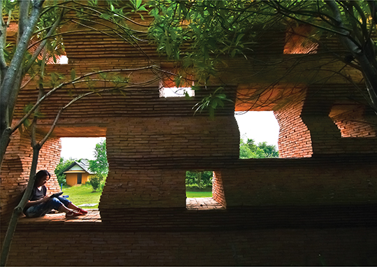 In social way, The use of brick and innovation through the construction method are the beginning of life style change from the Jobless to become the Knowledge seeker. This construction can be treated as a breath keeping action of the local knowledge from the past prior to its extinction. What they get is not only the wages but also the opportunity that they are neglected from the society. The architect also realizes the use of "mind" and the worthiness of "hand". A story of the last brick maker village, labor workers and craft man. It reflects to living among survival situation that most architects have never interested them.